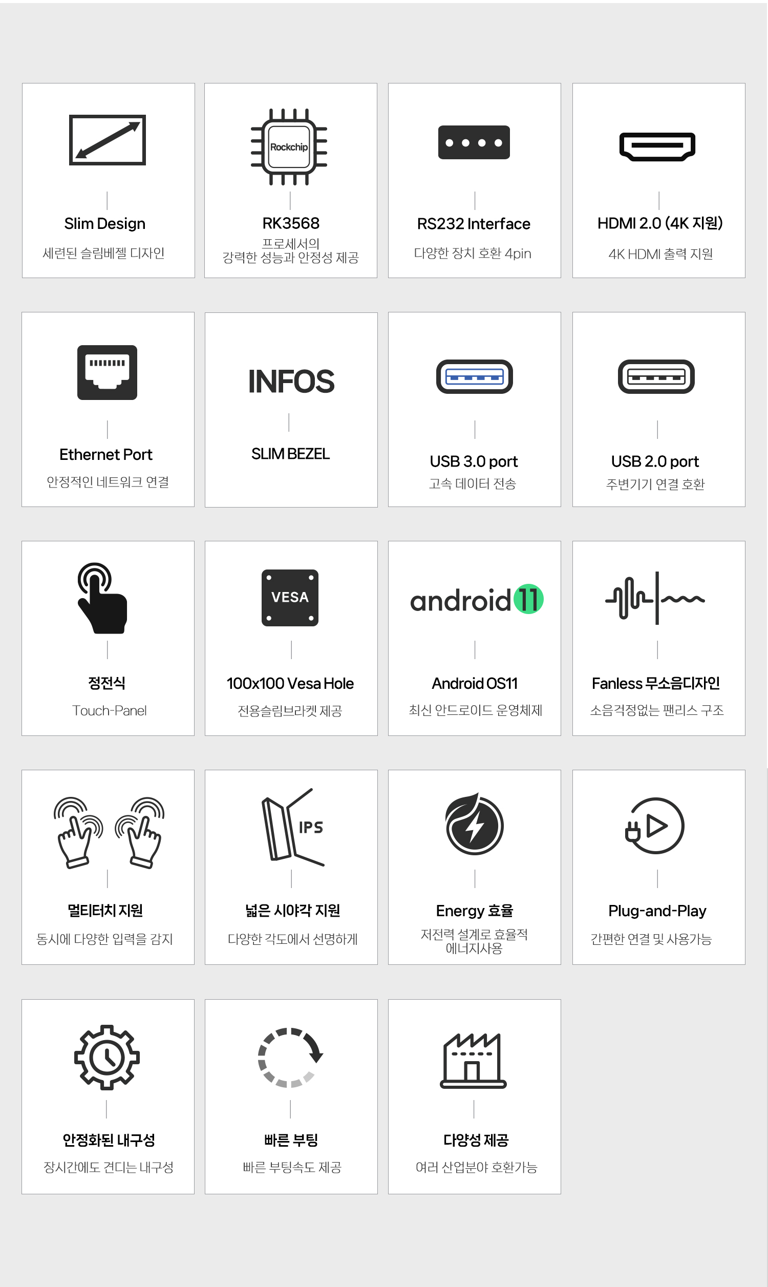 안드로이드 터치 PC 21형 디지털 사이니지 광고 시스템 INFOS A2150T