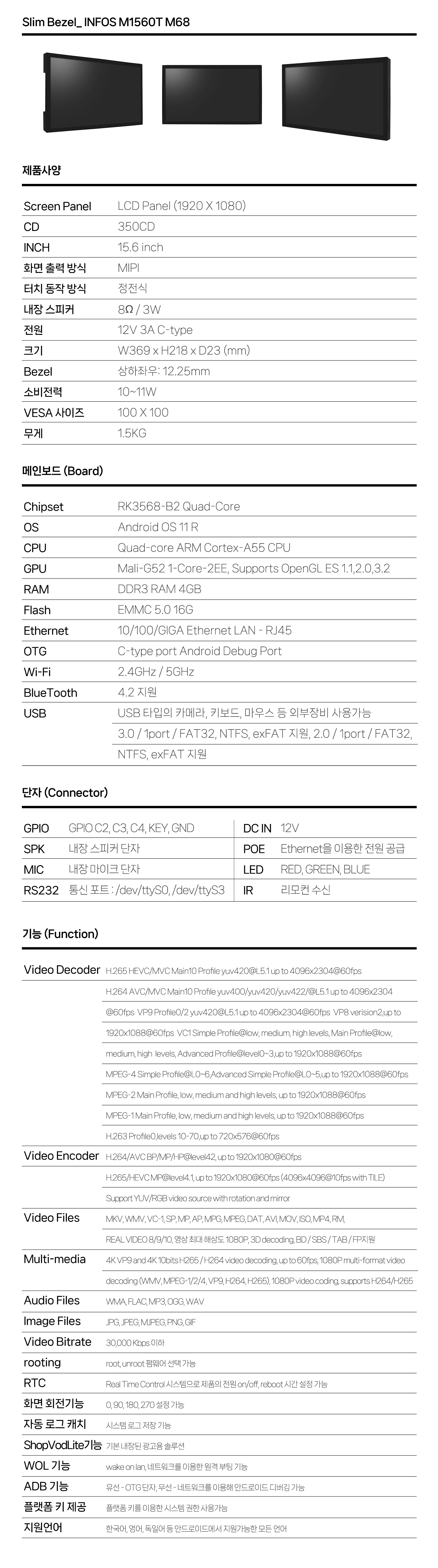 안드로이드 터치 PC 15형 디지털 사이니지 광고 시스템 INFOS A1560T
